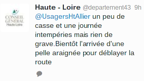 Le département de Haute-Loire, responsable du dégagement de la route, enfume tout le monde.