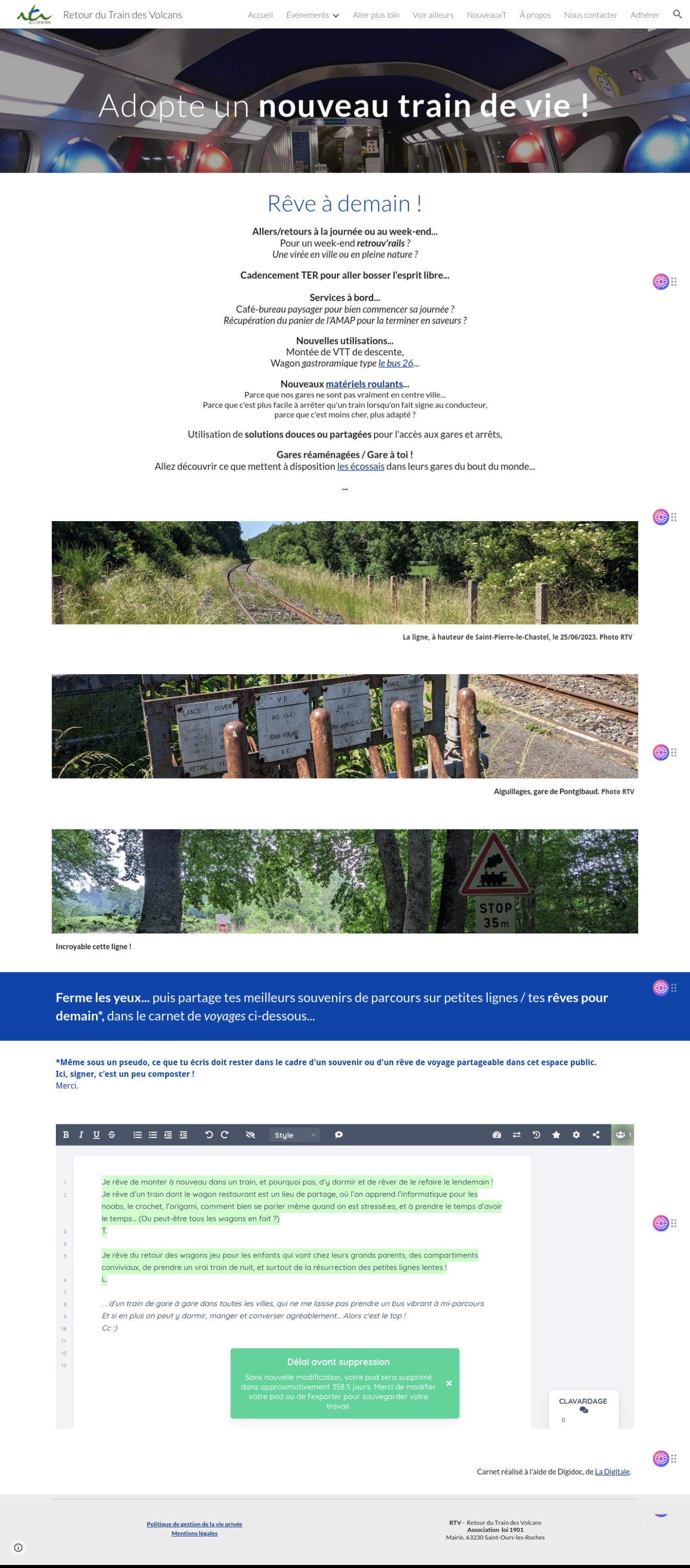 L’organisation dont le siège est à Saint-Ours à l’ouest de Volvic et de Clermont-Ferrand participe aussi aux rencontres région AuRA / usagers, aux forums des associations, elle est bien présente pour les différentes actions concernant le ferroviaire dans le massif central... Un démarrage sur les chapeaux de roue. Bravo à eux.