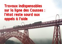 Voici le communiqué reçu du Comité pluraliste pour le défense, la réhabilitation et la promotion de la ligne Béziers Neussargues Clermont Ferrand Paris. Il s’insurge contre l’immobilisme de l’état qui est muet quant au financement nécessaire de sa part pour les travaux sur le tronçon Saint-Chély d’Apcher Neussargues. Faute d’engagement les circulations fret et voyageurs seront suspendues, cela nous a été affirmé en comité technique ce 23 mai à Clermont-Ferrand. Cliquez pour agrandir.