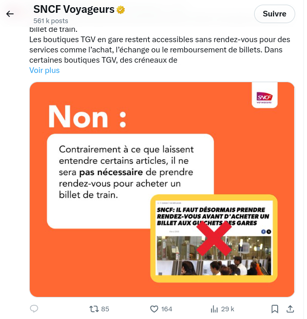SNCF Voyageurs vient de réagir sur Twitter / X :