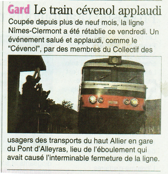 Réouverture de la ligne des Cévennes : l’hommage des usagers des transports du haut Allier au Cévenol